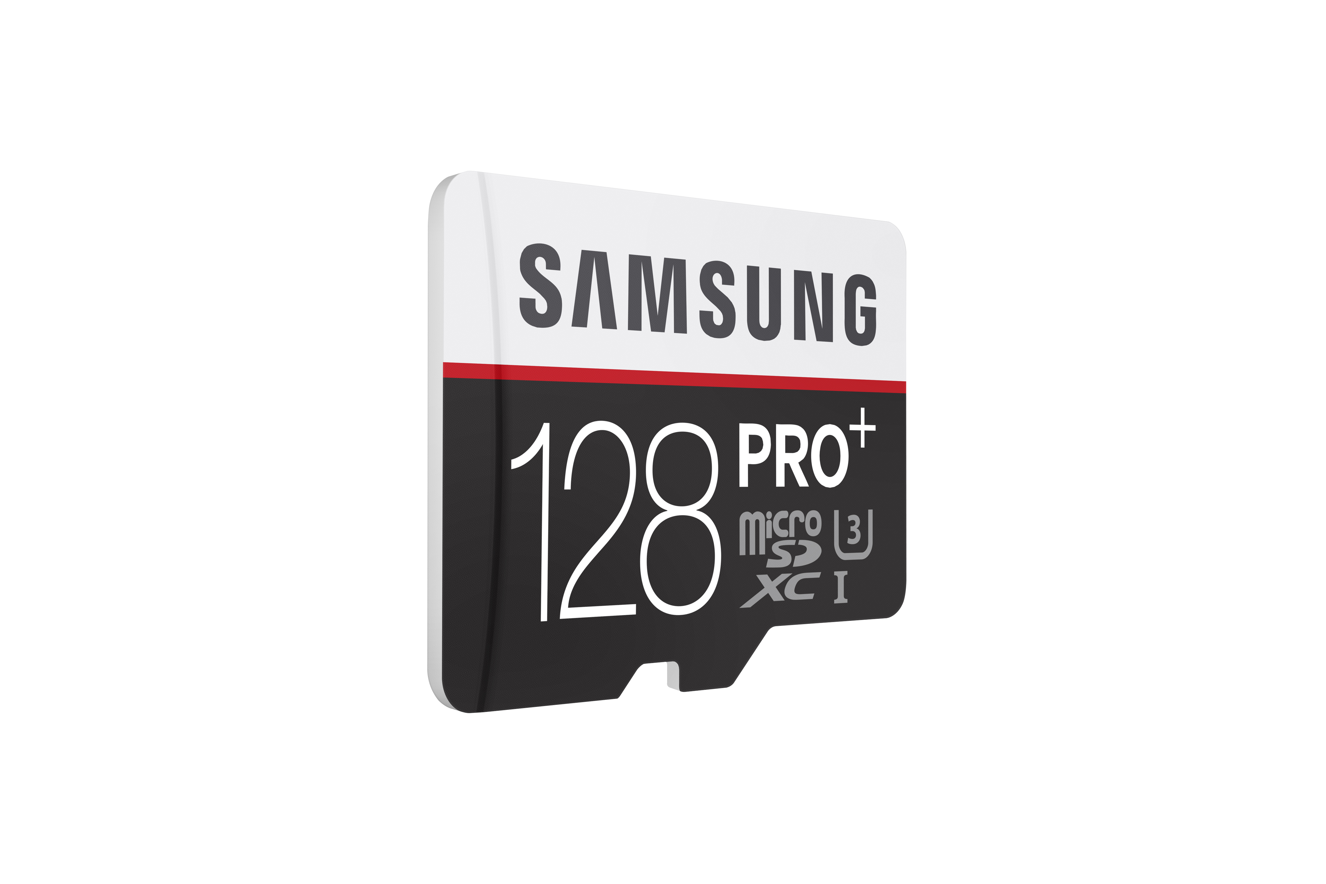 A 128 GB-os microSD kártya a Samsung PRO Plus sorozatának legújabb tagja, amelyet 2015 májusában mutattak be 32 GB-os és 64 GB-os verzióban. A 128 GB-os microSD jellemzői a kiváló minőségű MLC NAND flash technológia, az UHS-I Speed Class 3 (U3) és Speed Class 10 támogatás, amelyeknek hála az iparágban leggyorsabb, akár 95MB/s olvasási és 90MB/s írási sebességre is képes.
