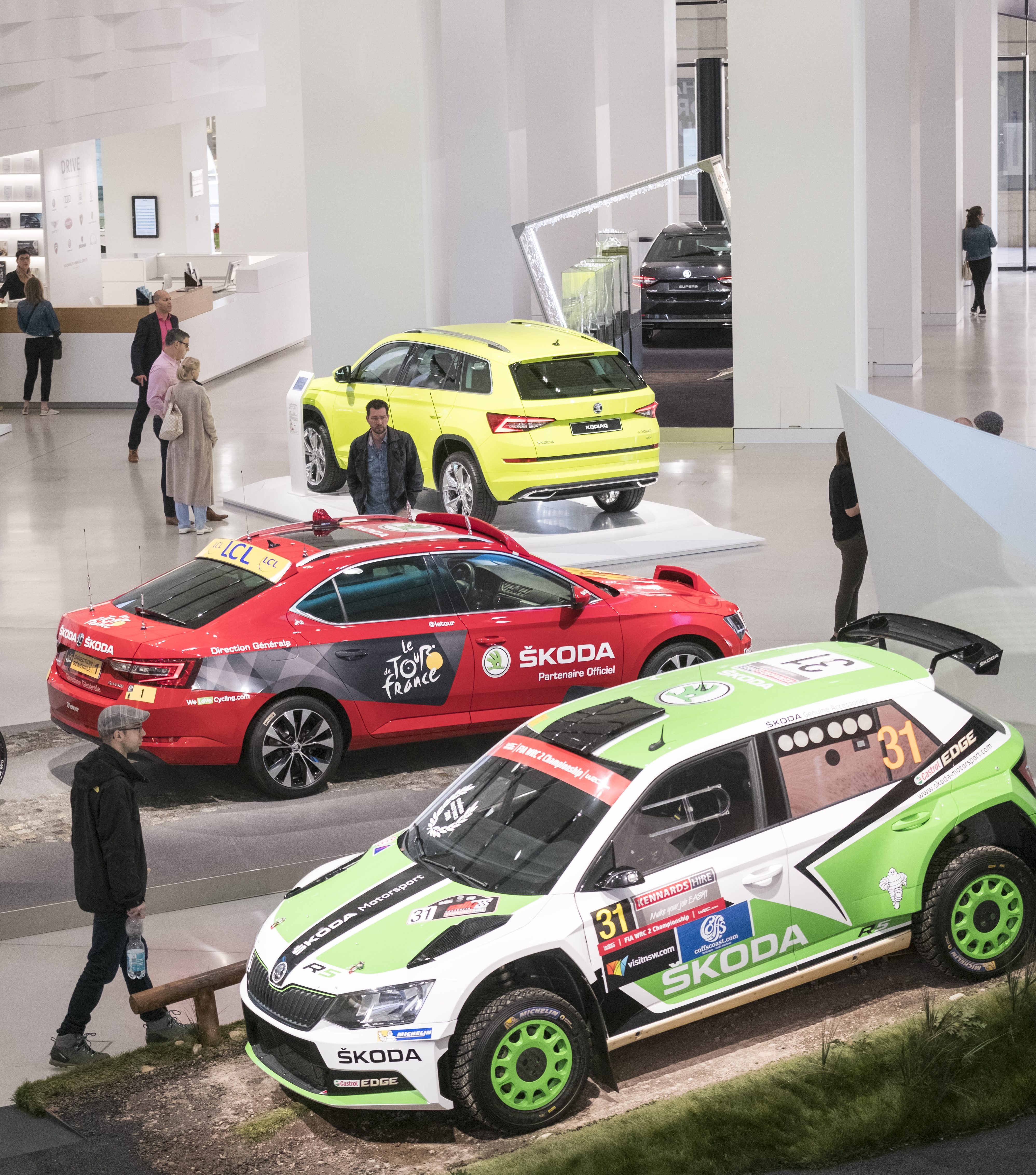 A dizájn és a connectivity mellett a márka szponzori tevékenysége alkotja a kiállítás harmadik részét. A kerékpár- és az autósport, illetve a jégkorong ŠKODA által támogatott kiemelt eseményei világszerte millióknak kínálnak igényes szórakozást. 2017-ben a cseh márka immár tizennegyedik alkalommal lesz a Tour de France hivatalos támogatója és járműpartnere. A Franciaország és Németország által közösen rendezett jégkorong-világbajnokság főtámogatója ugyancsak a ŠKODA – immár összesen 25. alkalommal. Ezzel a cseh gyártó már a Guinness Rekordok Könyvébe is bekerülhet, ez ugyanis a leghosszabb világbajnokság-szponzorációs tevékenység a világon. A ŠKODA mindezeken túl a raliversenyek egyik legsikeresebb szereplője szerte a világon, pilótái már önmagában az elmúlt év során is számos nagy sikert ünnepelhettek a ŠKODA FABIA R5 volánja mögött. 2016-ban Esapekka Lappi és Janne Ferm diadalmaskodott az FIA Rali Világbajnokságon (WRC 2). Emellett a ŠKODA Dél-Amerikában, az ázsiai/csendes-óceáni térségben és a Közel-Keleten is nyert kontinensbajnokságokat, amit kilenc országos bajnoki cím tett teljessé. A DRIVE. Volkswagen Group Forum látogatói testközelből ismerkedhetnek meg a turbómotoros és összkerékhajtású FABIA R5 versenygéppel, de a raliszimulátor virtuális valóság szemüvege segítségével saját versenyzői képességeiket is tesztelhetik.