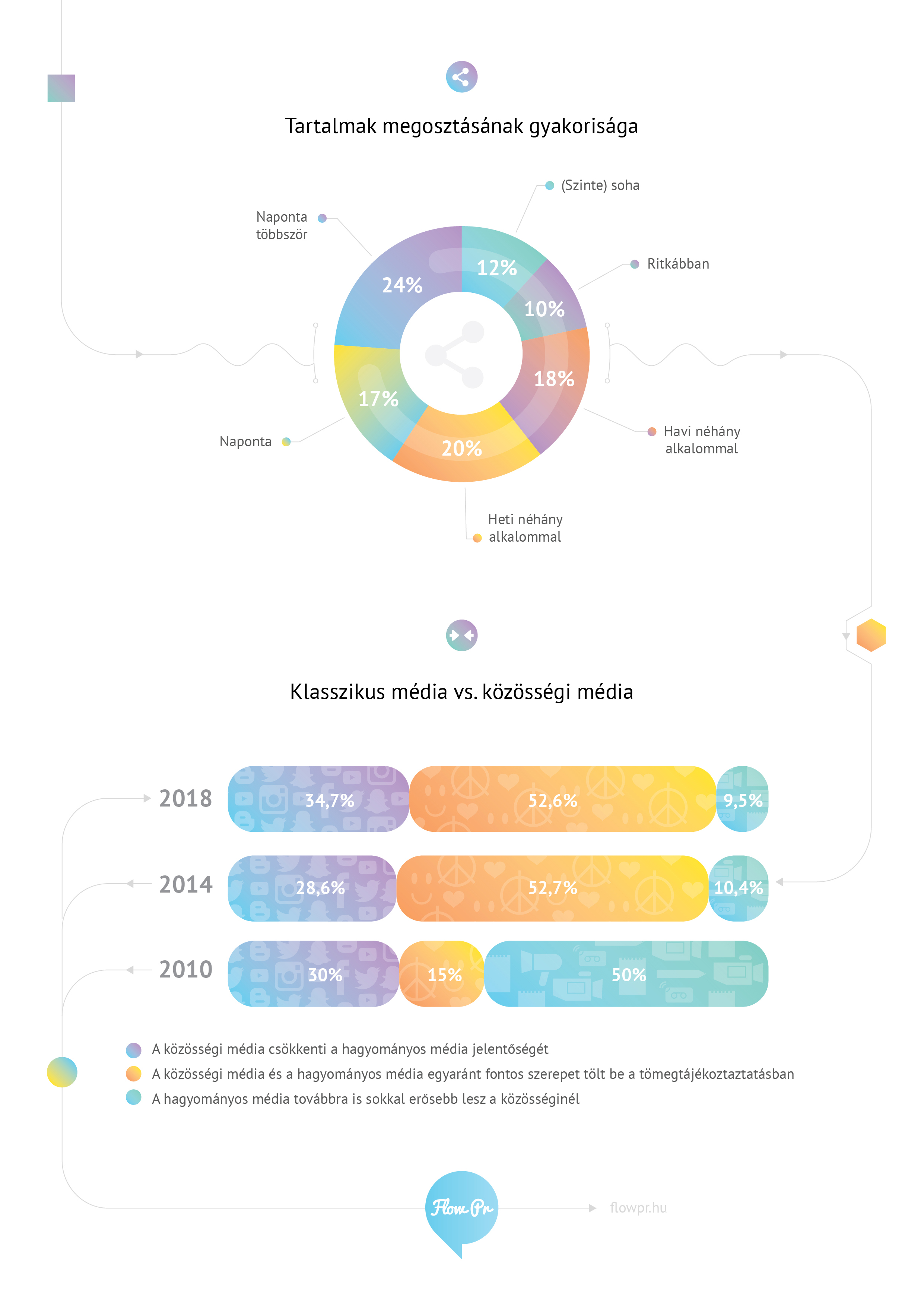 A FLOW PR harmadik alkalommal elvégzett kutatásának célja annak vizsgálata, hogyan használják az újságírók a közösségi médiát a munkájuk során és szabadidejükben. Az első felmérés 2010-ben, a második 2014-ben készült. Az adatfelvételt 2018. október 2. és 29. között végeztük el, online kérdőív segítségével. A felmérés elkészítéséhez a közéleti, gazdasági, bulvár és életmód médiumok, valamint a tematikus média (ingatlan, egészségügy, IT stb.) szélesebb kört elérő szerkesztőségeiből közel 200 újságíró járult hozzá válaszaival.