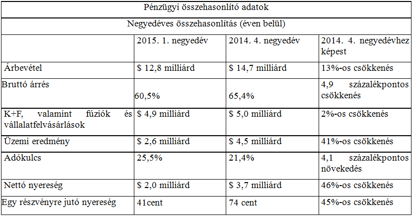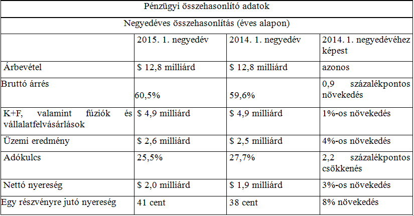 – K+F valamint a fúziókra és vállalatfelvásárlásokra költött összeg: körülbelül 4,9 milliárd dollár.