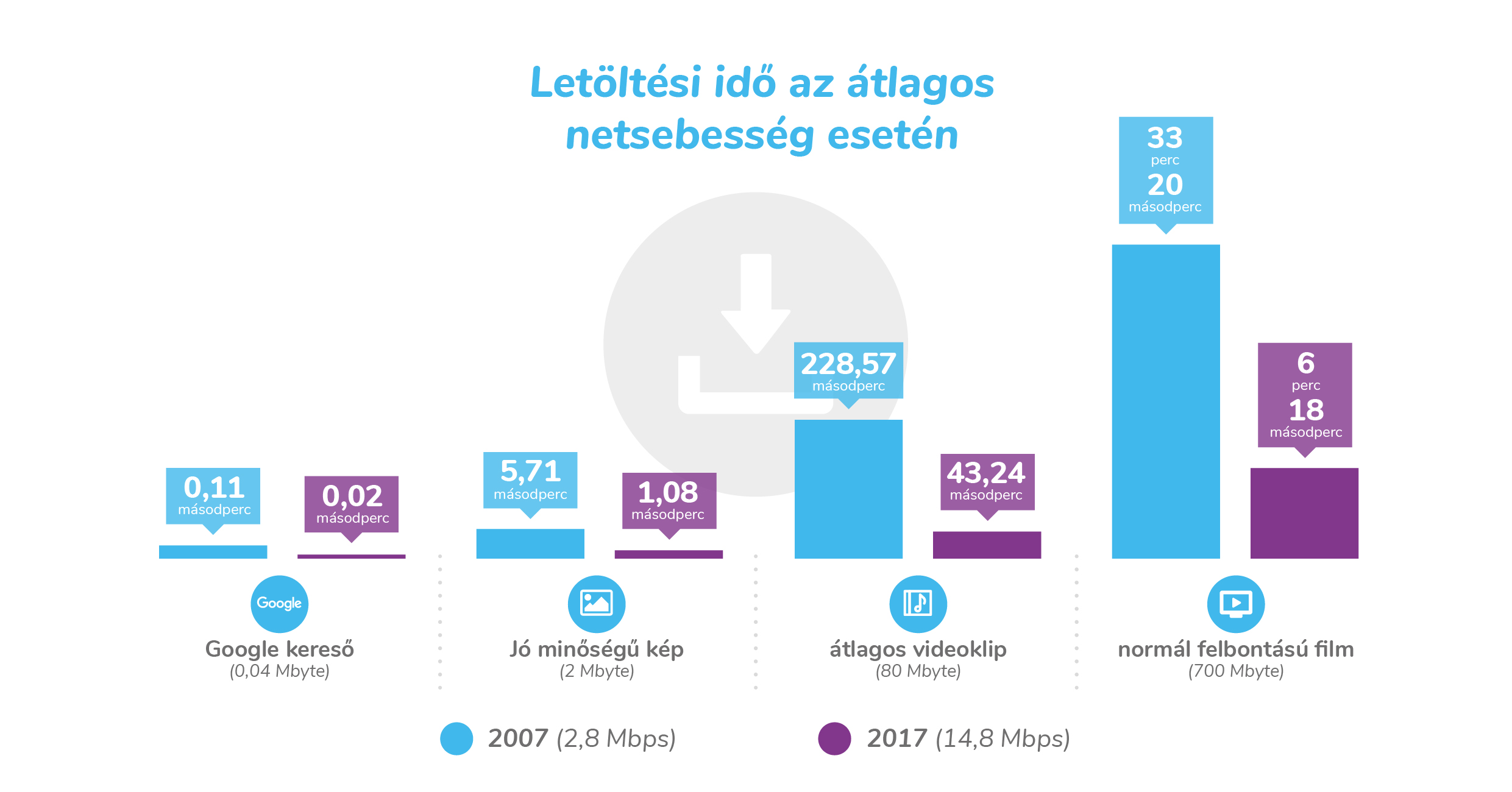 Tíz évvel ezelőtt a magyarországi internetkapcsolatok átlagos sebessége 2-3 Mbps környékén alakult, ma viszont már 14,8 Mbps. A közel 600 százalékos növekedés nem példa nélküli, de kifejezetten jó eredménynek tekinthető. Ennek következtében ma Magyarországon 94% a szélessávú (vagyis 4 Mbps-t meghaladó) netkapcsolatok aránya, ami európai szinten is kifejezetten jónak mondható. Különösen ha figyelembe vesszük, hogy 2007-ben ez a szám a 0,1%-ot is alig érte el.