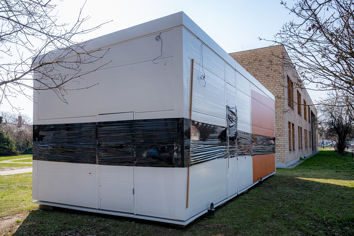 Az automata boltot a napokban leszállították a Széchenyi István Egyetem mosonmagyaróvári campusára. (Fotó: Adorján András/Széchenyi István Egyetem)