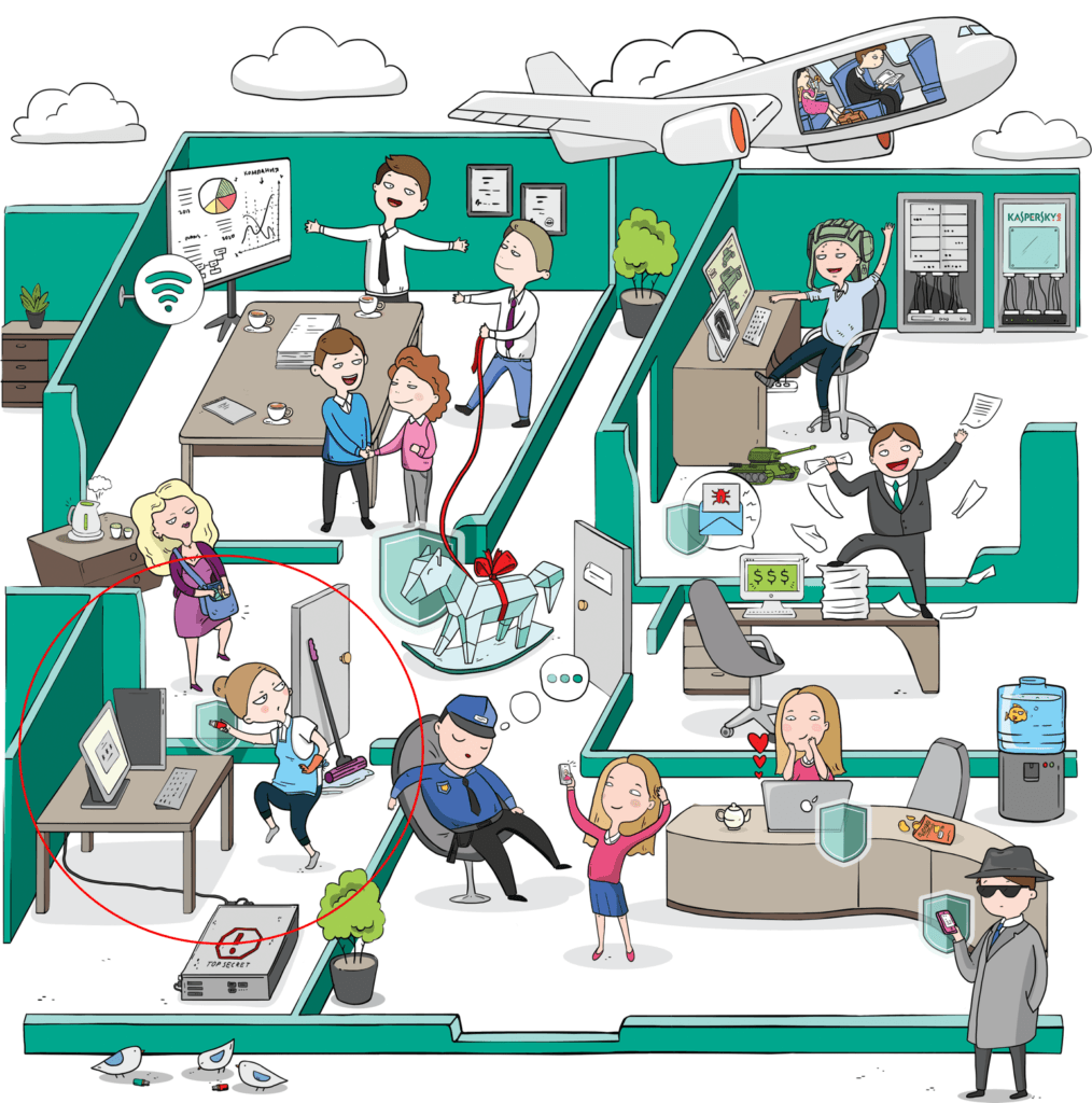 A kutatás egy igaz történettel kezdődött: egy másik vizsgálat során, amelyben a Kaspersky Lab szakértői részt vettek, egy takarító cég alkalmazottja (insider – bennfentes) pendrive-ot használt arra, hogy megfertőzze a cég munkaállomását egy kártékony programmal. A történet megismerése után a Kaspersky Lab szakemberei kíváncsiak voltak arra, hogy milyen egyéb eszközöket használhatnak a bennfentesek a célzott támadások esetén. Lehetséges-e egyáltalán veszélyeztetni a hálózatot a rosszindulatú programok (malware) nélkül?