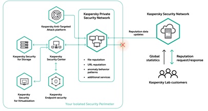 A vállalkozások 57%-a elismeri, hogy az informatikai biztonság sérülhet egy bizonyos ponton túl, és a kereslet a valós idejű biztonsági észlelésre folyamatosan nő. A felhőalapú fenyegetettség-észlelő segít gyors és pontosan azonosítani a gyanús fájlokat (hash sum vagy tanúsítvány használatával) vagy URL-eket, így a vállalkozások elkerülik az érzékeny adatok vagy a teljes informatikai infrastruktúra elvesztését. A Kaspersky Security Network (KSN), a Kaspersky Lab megosztott felhőalapú infrastruktúrája néhány perc alatt azonosítja az új fenyegetettségeket a 80 millió szenzornak köszönhetően. Ugyanakkor egyes vállalkozások vagy szervezetek számára a felhőalapú szolgáltatások használata korlátozva lehet a törvény vagy bizonyos hálózatbiztonsági előírások által. A Kaspersky Private Security Network megoldást nyújt erre a problémára egy saját felhőn keresztül, amely a KSN belső példányát tartalmazza, így elérhetővé a KSN összes előnye a vállalati informatikai infrastruktúrán belül. A naprakész adatok a kiberfenyegetésekről a KSN-től egyirányú szinkronizálással érkeznek, ami azt jelenti, hogy a vállalati hálózaton keresztül nem kerül ki adat a felhőbe.