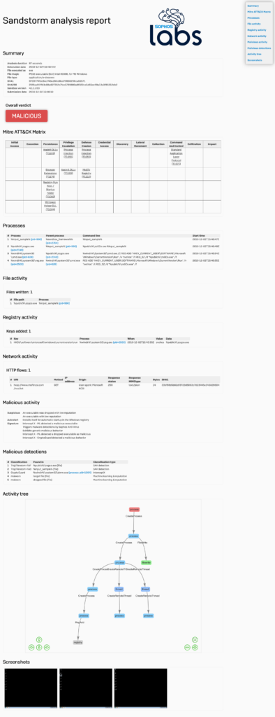 - Dinamikus fájl analízis: Dinamikus fájl elemzést és osztályzást biztosít a megosztott fájlok virtuális környezetben történő futtatásával és tesztelésével. A potenciális veszélyek valódi viselkedésének és céljának felfedéséhez a legújabb futásidejű felismerési technikákat használja.