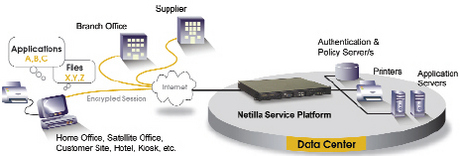 Amennyiben rendelkezünk webes, intranetes (HTTP) alkalmazásokkal, a Netilla kiépíti az SSL kapcsolatot a felhasználóig, míg egy teljesen új kapcsolatot nyit a belső intranetes alkalmazásig, így biztosítva a biztonságos elérést. Ha az alkalmazásokat távolról szeretnénk futtatni (kliens/szerver üzemmód) a Netilla összekapcsolódik a belső szerverekkel a megfelelő protokollok segítségével (RDP, X.11, telnet), majd feldolgozza az onnan érkező információkat és a képernyő tartamot egy protokoll konverzió után, SSL kapcsolaton keresztül megjeleníti a távoli felhasználó böngészőjén. Ennek segítségével bármilyen irodai alkalmazást (MS Office, SAP, Tivoli, Remedy stb.) használhatunk a távolból, vagy szerverekkel kapcsolódhatunk össze egyetlen böngésző segítségével.