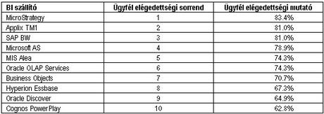 „Ezek az eredmények némiképp meglepőek, hiszen a jól ismert Üzleti Intelligencia szállítók – akik az utóbbi időkben nagy nyereségre tettek szert – az ügyfél elégedettség szempontja alapján alacsony pontszámmal a lista végére kerültek, míg a MicroStrategy, mely egy egyszerű termékarchitektúrára összpontosított és szervezetileg fejlődött, az első helyre került.” – jelentette ki Nigel Pendse, az OLAP Survey 4 megalkotója.