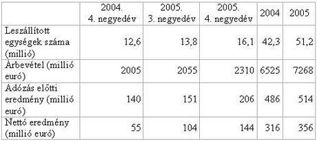 A Sony Ericsson Mobile Communications AB (Sony Ericsson) konszolidált pénzügyi összefoglaló jelentése a 2005. december 31-ével zárult negyedik negyedévre és a teljes 2005-ös évre nézve a következő: