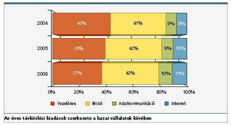 A hazai vállalati szféra távközlési piacának 2004-2005 terminusban tapasztalt zsugorodása megállt, de a cégek telekommunikációs költségstruktúrájában markáns átrendeződések figyelhetőek meg: a vezetékes telefonkiadások csökkenése és a mobilpiac stagnálása mellett az adatkommunikációs és Internet-piacok mérsékelt növekedésének lehetünk tanúi – összegezte a kutatási eredményeket Andrási Tamás, a BellResearch üzletfejlesztési igazgatója.
