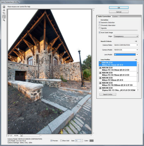 Automatikus lencsetorzítás-korrekcióAz Adobe Photoshop család