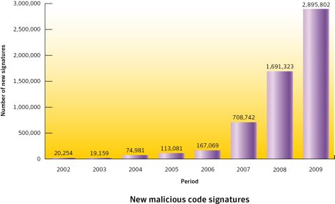 2009-ben a Symantec több mint 240 millió különálló károkozó programot különböztetett meg, amely a 2008-as adatokhoz képest 100 százalék növekedést jelent. Gombás László, a Symantec hazai képviseletének rendszermérnöke elárulta, hogy tavaly a sárga-fekete vállalat víruslaborjában dolgozó kollégáinak átlagosan percenként 8 új digitális kártevővel kellett foglalkozniuk, ami – a szakértő becslése szerint – idén akár 70 százalékkal is nőhet (átlagosan percenként 14-re).