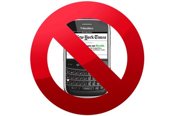A New York Times mobilos alkalmazása ezentúl nem lesz elérhető a RIM készülékeire.