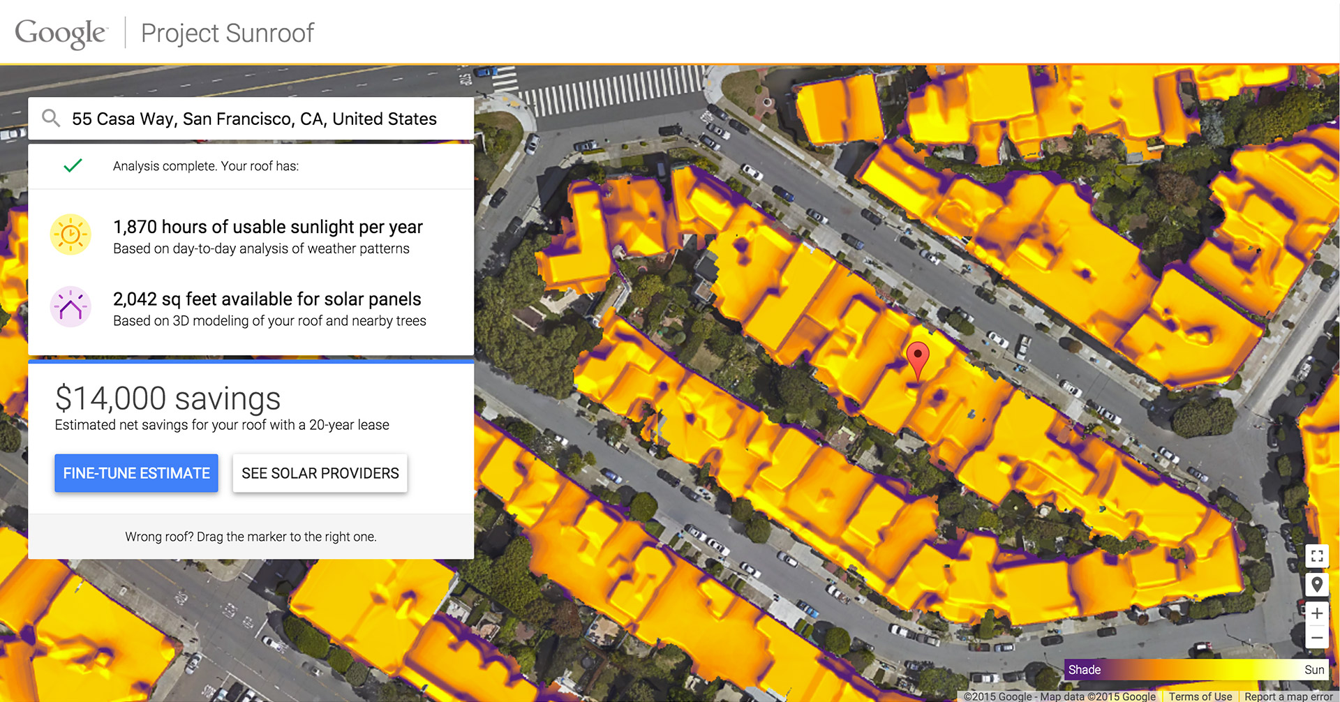 Ekkor a Project Sunroof megvizsgálja, hogy az adott területre hány órát süt a nap és kalkulációt végez, hogy mekkora napelemre lenne szükség a megtérülő befektetéshez. A történet itt még nem ér véget, hiszen a rendszer automatikusan elérhetőségeket ad a környékbeli, napelemekkel foglalkozó vállalatokról, így gyorsan megkezdődhet a telepítés. Ahogyan az lenni szokott, egyelőre semmilyen hír nincs arról, hogy máshol is elérhető lesz-e a Project Sunroof.