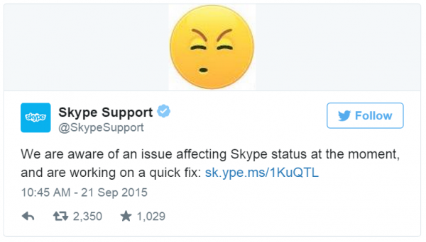 Hétfőn világszerte észlelték, hogy a Skype valamilyen hiba folytán minden ismerőst offline-nak mutat, illetve a csoportüzenetek egy része elveszik. A vállalat a Twitteren osztotta meg, hogy tudnak a hibáról is már dolgoznak a javításon.