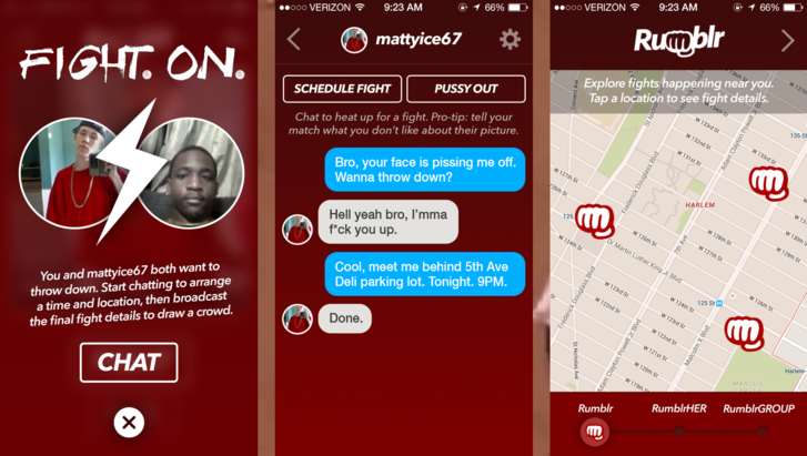 A Tinder mintájára most elkészült az első olyan alkalmazás, amellyel bunyós partnert válszthatunk magunknak. A cél az, hogyha az ember szertne egy jót verekedni, akkor egy pillanat alatt megtalálhassa az ellenfelét. A harcostárskeresőként aposztrofált Rumblr-ben elég kihívnunk az ellenfelet egy párbajra, majd egy rövid chatelés után meg is állapodhatunk, hogy hol szeretnénk összeverekedni.
