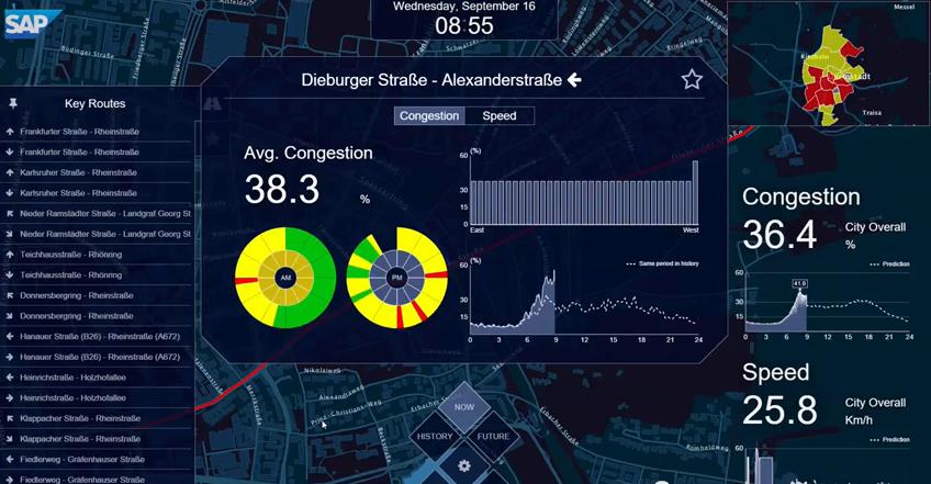 Az SAP és az EnBW áramszolgáltató fejlesztésének köszönhetően a jövő utcalámpái számos hasznos adattal szolgálnak majd a környezetükről szenzoraik segítségével és az IoT (dolgok internete) mind nagyobb szerephez jut a városfejlesztés területén is. Az új megoldással a közlekedési dugókról vagy a szabad parkolóhelyek számáról is információ nyerhető, így a parkolóhely-keresésre szánt idő és a forgalom egyaránt csökkenthető, ahogy a levegőszennyeződés mértéke is valós időben nyomon követhető. Az intelligens lámpák LED világítást alkalmaznak, az okostelefon felhasználók számára Wi-Fi hotspotként, az elektromos autók esetében pedig töltőállomásként is szolgálnak majd, de számos egyéb funkciót is kínálnak, például vészhívóval és a karbantartási igényt előre jelző rendszerrel rendelkeznek.