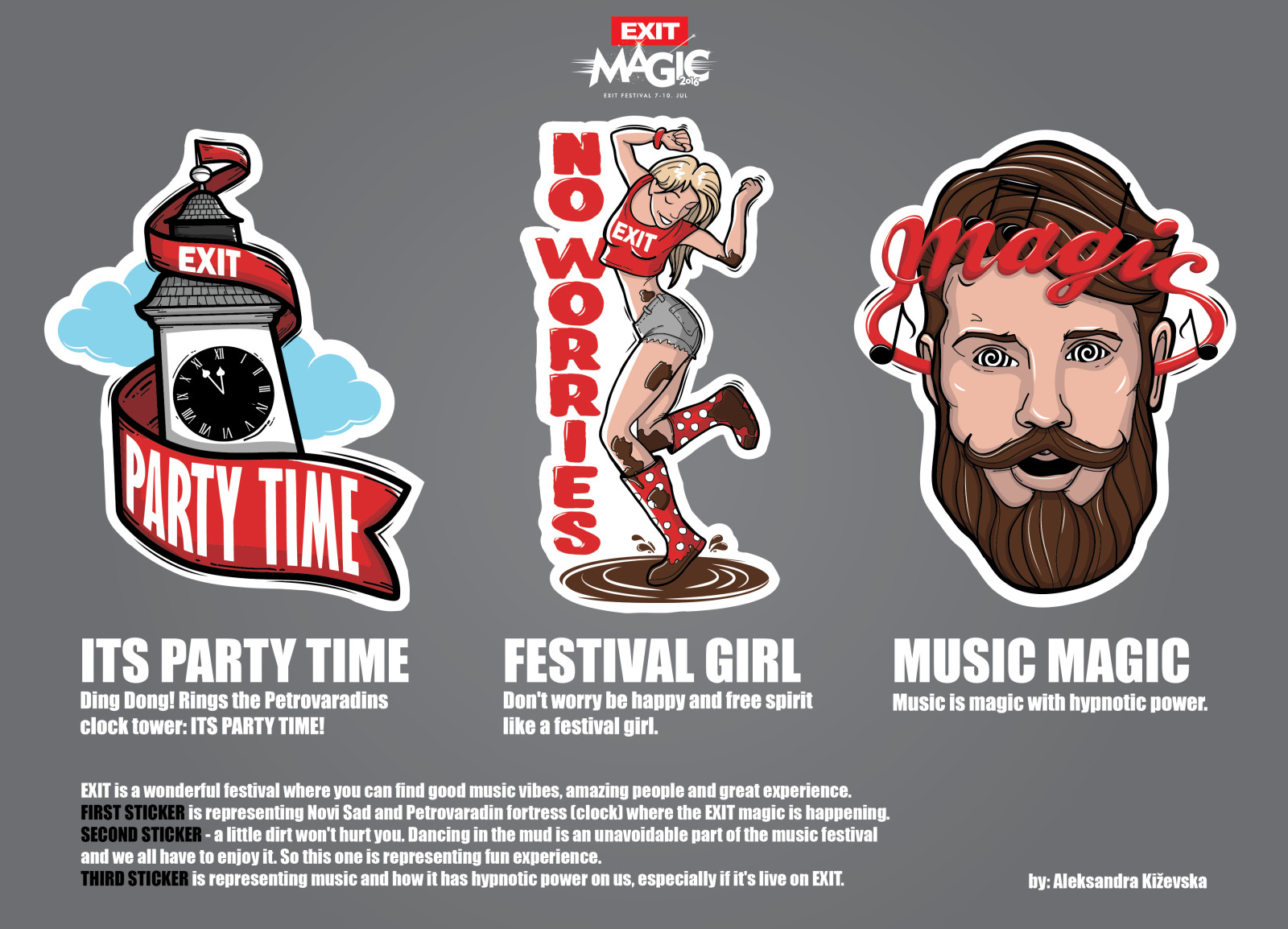 A „My EXIT Adventure” matricadizájn-verseny célja, hogy a kreatív elmék világszerte kifejezhessék az EXIT fesztiválok különleges hangulatát Viber-matricák segítségével, amelyeket aztán az üzenetküldő alkalmazásban csevegéskor bármikor használhatnak.