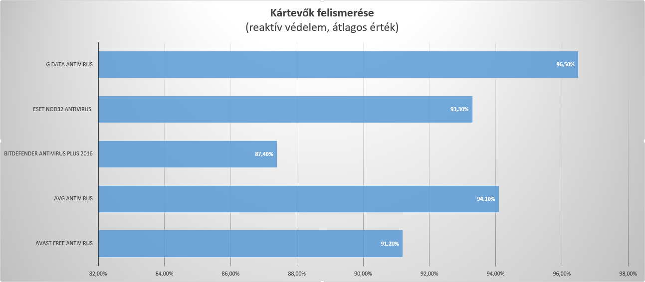 A Bitdefender már lényegesen jobban teljesített, mindössze 15 százalékkal lassította le a gépet. Az ismert programok közül azonban egyedül a G Data remekelt. A német vírusirtó csupán 4,5 százalékkal lassította le a feladatok elvégzést, miközben az említett szoftverek közül ez ismerte fel a legtöbb kártevőt is.