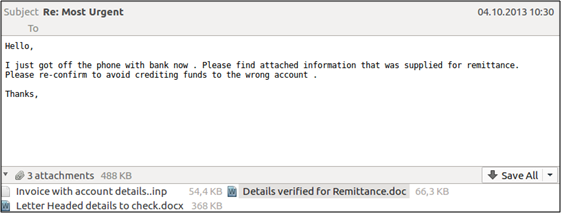 Példa adathalász e-mailre az InPage szoftver dokumentumában