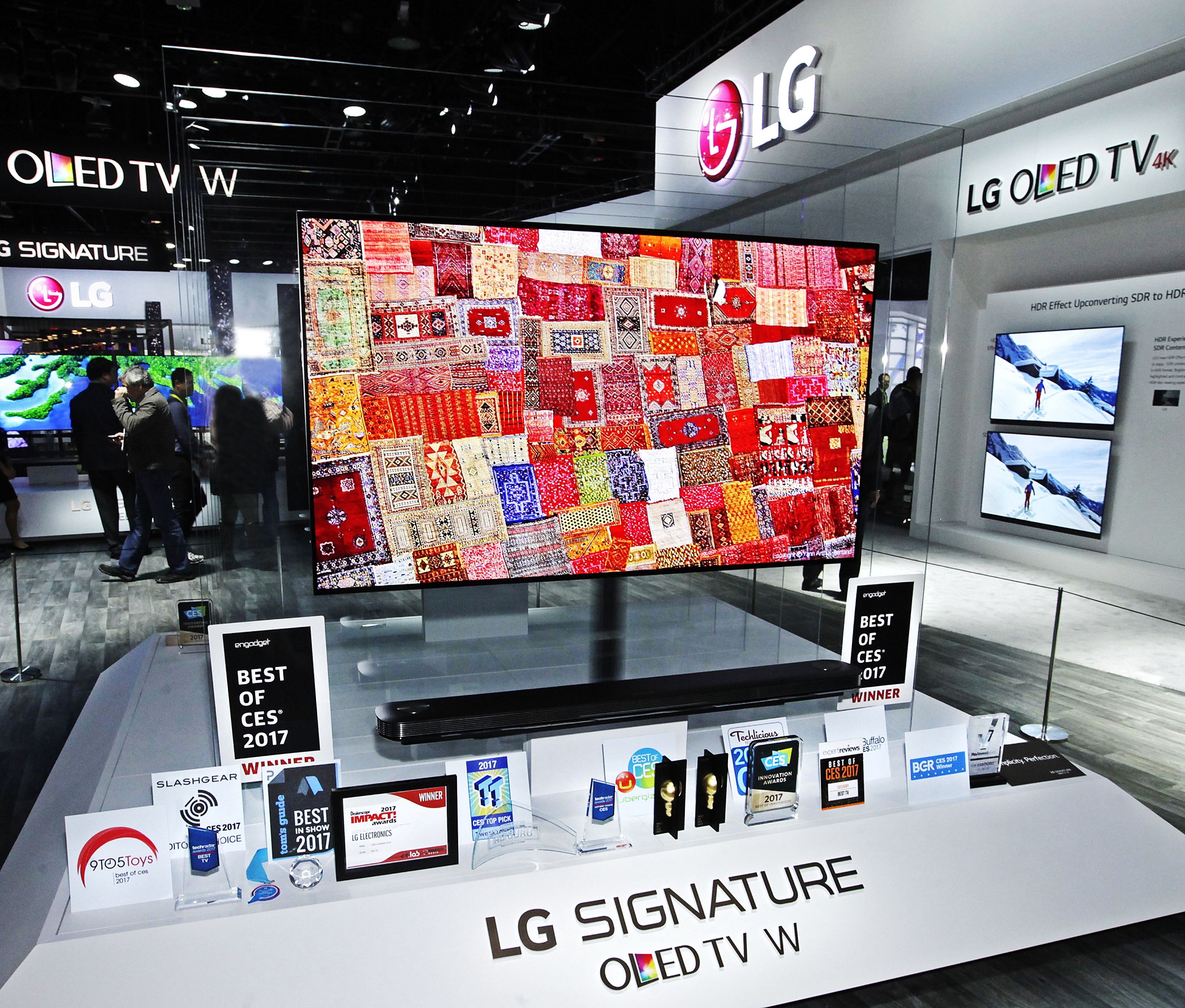 LG SIGNATURE W7 OLED TV: Engadget Best of CES: Best of the Best, Engadget Best of CES: Best TV Product, Expert Reviews CES Top Picks: Best TV, Men’s Health Editors’ Choice Awards, TechRadar’s 2017 CES Awards: Best in Show, The Verge: Best TV, Advertising Age Best of CES, BGR Best of CES, CNET Best of CES 2017: The Best Thing We Saw, Pocket-Lint: Best TVs of CES, CNN Money Coolest Tech Products at CES, Dealerscope Best of CES, FOX News 10 Best Gadgets at CES, PCMag Best of CES: Best Television, Popular Mechanics Best of/Editors’ Choice CES Awards, Reviewed.com CES Editor’s Choice Winners, SlashGear: Best of CES, Sound & Vision/What Hi-Fi Stars of CES, Stuff Magazine Best TVs of CES 2017, Techlicious CES Top Picks, TechnoBuffalo Reader’s Choice Awards, TechRadar’s 2017 CES Awards: Best TV, AVS Forum Best New Products of CES 2017, Tom’s Guide Best of CES, Tweaktown Best of CES, TWICE Picks Awards: Video & TVs, T3 12 Best Gadgets We’ve Seen at CES, UberGizmo Best of CES, 9to5Toys Best of CES, EFTM Best of the Best
