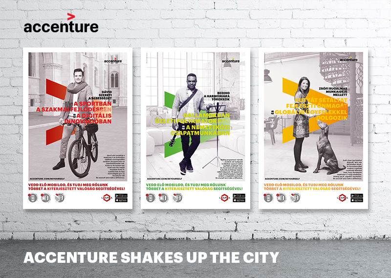 Most könnyen szerezhet bárki saját tapasztalatokat is az AR-ben rejlő látványos és forradalmi lehetőségekre, mivel az Accenture a főváros 100 különböző pontjára helyezett ki olyan plakátokat, amelyek AR effektekkel vannak ellátva. Ez azt jelenti, hogy amennyiben letöltünk egy appot a telefonunkra – hogy ezen keresztül vehessük szemügyre a plakátokat – akkor megnyitás után azok hihetetlen módon kelnek életre a szemünk láttára. Az interaktív plakátkampány jól illeszkedik a világ legnagyobb független technológiai szolgáltató cége, az Accenture profiljához, amely a világ 120 országában közel 400 000 munkatársával az innováció ösztönzésére törekszik a mindennapi élet és a munkavégzés feltételeinek javítása érdekében. Izgalmas és érdekes projektjeihez folyamatosan keresi az új munkaerőt, többek között Magyarországon is.
