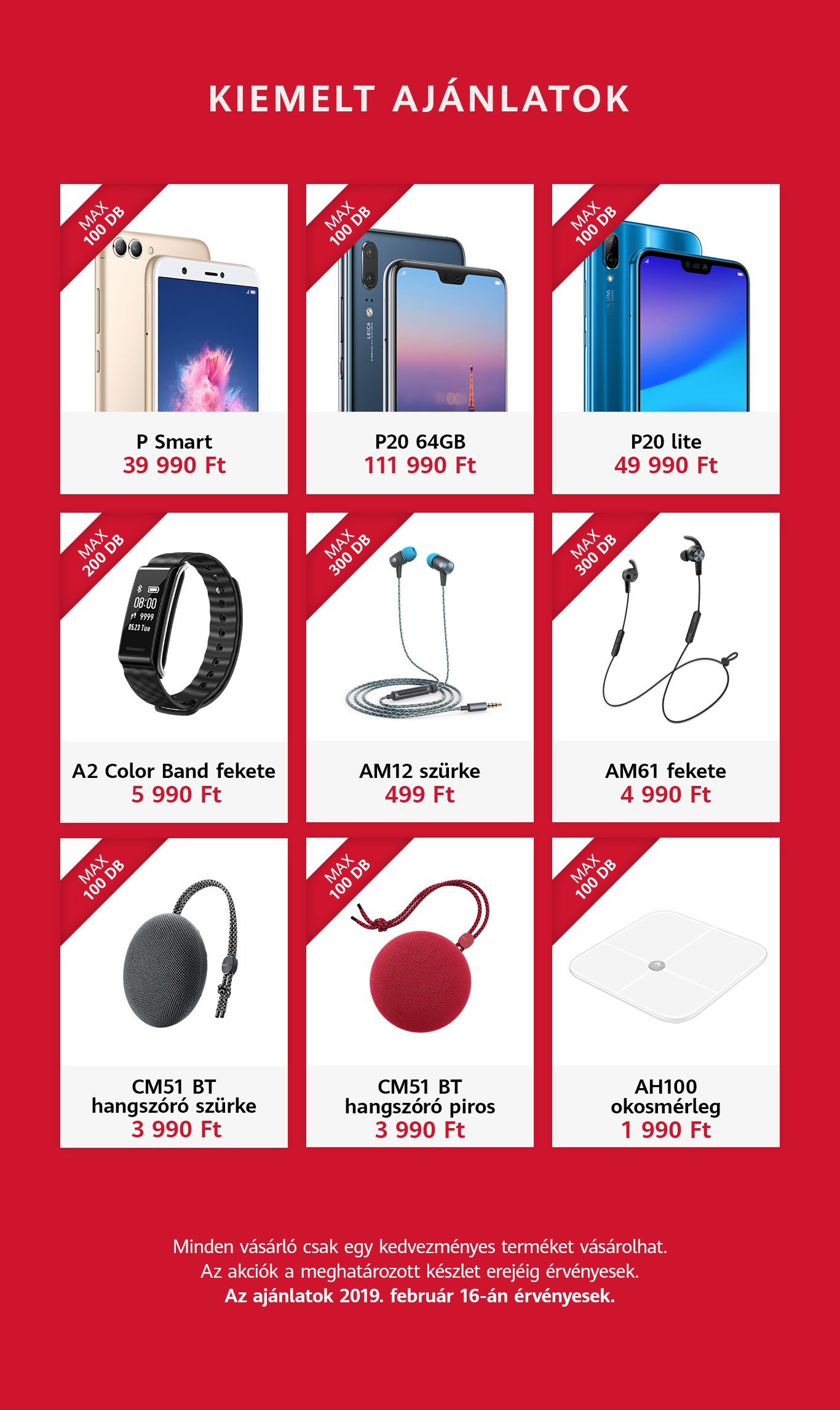 A február 16-án nyíló Huawei Experience Store Magyarországon a gyártó első, de nem az utolsó ilyen jellegű boltja. Az üzletnyitás alkalmából a Huawei márkanagykövetei délelőtt 10 órától kerekasztal beszélgetéssel, nyereményjátékokkal és színes programokkal várják az érdeklődőket. A gyártó kiemelt ajánlataként a látogatók a boltnyitás alkalmából az első 100-100-100 darab készülék erejéig kihagyhatatlan áron vásárolhatják meg a P széria készülékeit és hatféle, szintén limitált mennyiségben kapható okoskiegészítőjét.