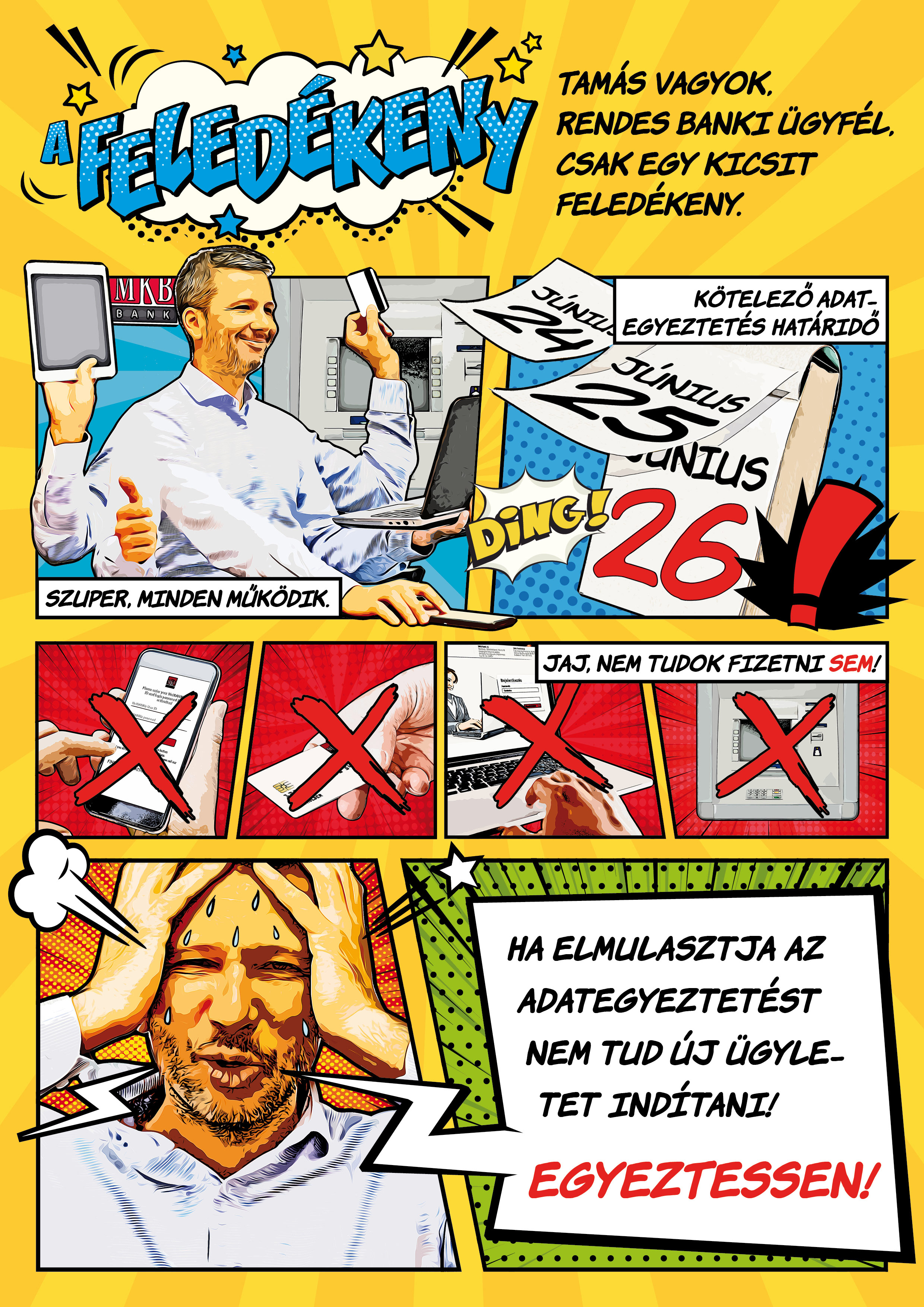 Az MKB hívta fel a figyelmünket, a sajnálatos módon elég silányul kommunikált, bár ezzel fordítottan arányos fontosságú adategyeztetésre, hiszen ha ezt elmulasztjuk, azonnal zárolják a számlánkat.