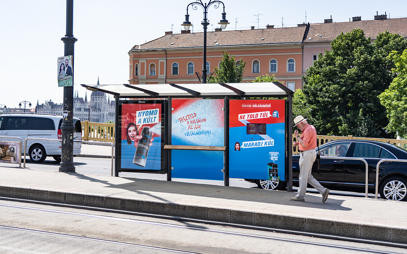 Június 1-től a Wesselényi utca / Erzsébet körút és Margit híd, budai hídfő 4-es, 6-os villamosmegállókbanis találkozhatnak a járókelők az AXE egyedülálló, fiatalokat célzó Out Of Home megoldásával, az AXE Ice Chill kúlságmérőkkel.