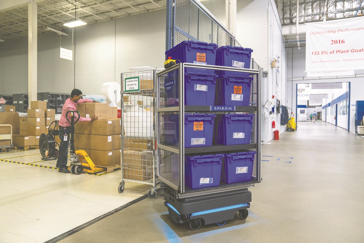 Az amerikai sebészeti eszközök gyártásával foglalkozó Argon Medical Devices jó példa arra, hogyan szereznek a gyártóvállalatok előnyt a mobil robotok alkalmazásával. Az Illinois állambeli wheelingi üzemükben egy Mobile Industrial Robots (MiR) márkájú MiR200 robot szállít anyagot a gyárból a raktárba, majd onnan vissza, tisztatéri körülmények között. Ennek köszönhetően a vállalat optimalizálta belső anyagmozgatását és munkafolyamatait azzal, hogy a felszabaduló emberi munkaerőt nagyobb felelősséggel járó feladatokra tudta átcsoportosítani.