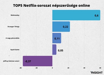 A Netflix ugyan mindig feldobja az aktuális népszerűségi listát, de előfordul, hogy a hátunk közepére sem kívánjuk azt, amiért mások megőrülnek. Minden idők, világszerte legnézettebb 5 sorozata sorrendben a Netflixen: a Squid Game, a Stranger Things, a Wednesday, a Jeffrey Dahmer sztori és a Nagy pénzrablás. Az Ynsight Research kutatócsapata utánajárt a neten fellelhető véleményeket elemezve, vajon a hazai nézők hogyan reagáltak a TOP 5-ösre.