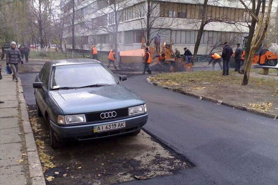 Azért az ukránok is tudnak, ha akarnak. Kicsit megzavarta az útfelújítást a parkoló autó, dehát nem az ő dolguk.
