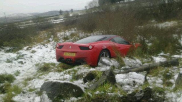 A 458 Italia sofőrje kicsit elmért valamit a havas-csúszós brit utakon.