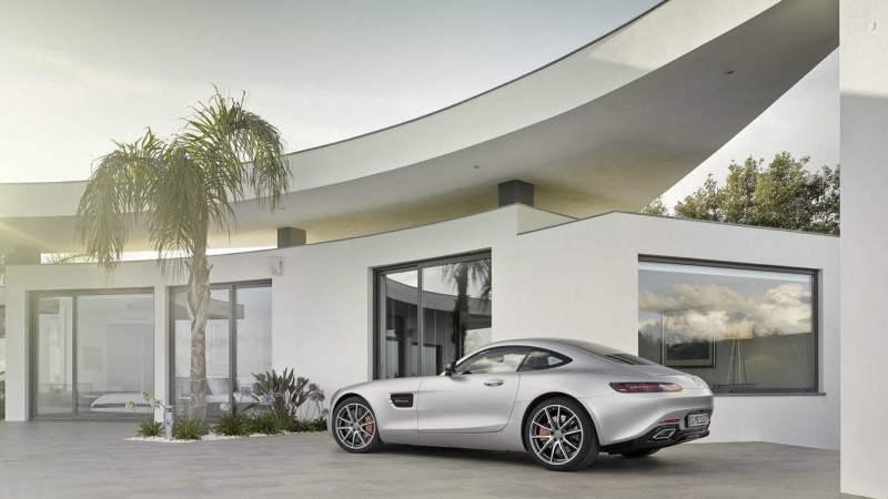 A külső megjelenés egyértelműen Mercedes-re hajaz. Az orr a tipikus lámpákkal, a hangsúlyos csillaggal, a nagy, gyémántot imitáló hűtőráccsal legalább annyira ismert megoldás, mint az oldalt elhelyezkedő, két lamellával ellátott levegőkilépő. A GT sportautós kiállása mellett a típus pozíciója is azonnal észrevehető: az SLS AMG kisebb, fejlettebb változatának tűnik, s valóban, a szupersportautó búcsúzásával érkező újdonság lefelé nyit.