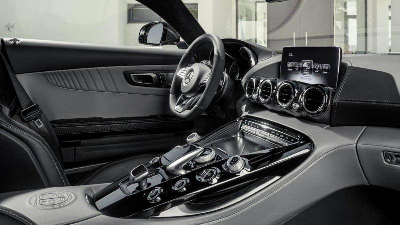 Mellette a V8-as hengerelrendezést okkal imitáló, ún. AMG DRIVE UNIT kezelői kaptak helyet, köztük az üzemmód-váltóval és a motorindító gombbal.