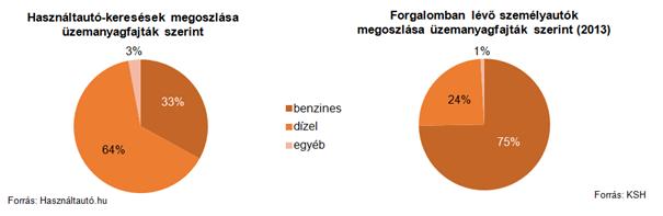 A forgalomba helyezett új autók körében már 2010-ben bekövetkezett ez a fordulat, jelenleg 100 új autóból már 54-ben dízel-, míg 44-ben benzinmotor üzemel. A használtautó-import során behozott járművek körében még nagyobb a dízelautók aránya, hiszen ebben a körben a hazai adás-vételekhez képest felülreprezentáltak a felső-középkategóriás (27 százalék), illetve a családi autók (18 százalék), melyeknek zömét dízelmotorral szerelték fel.