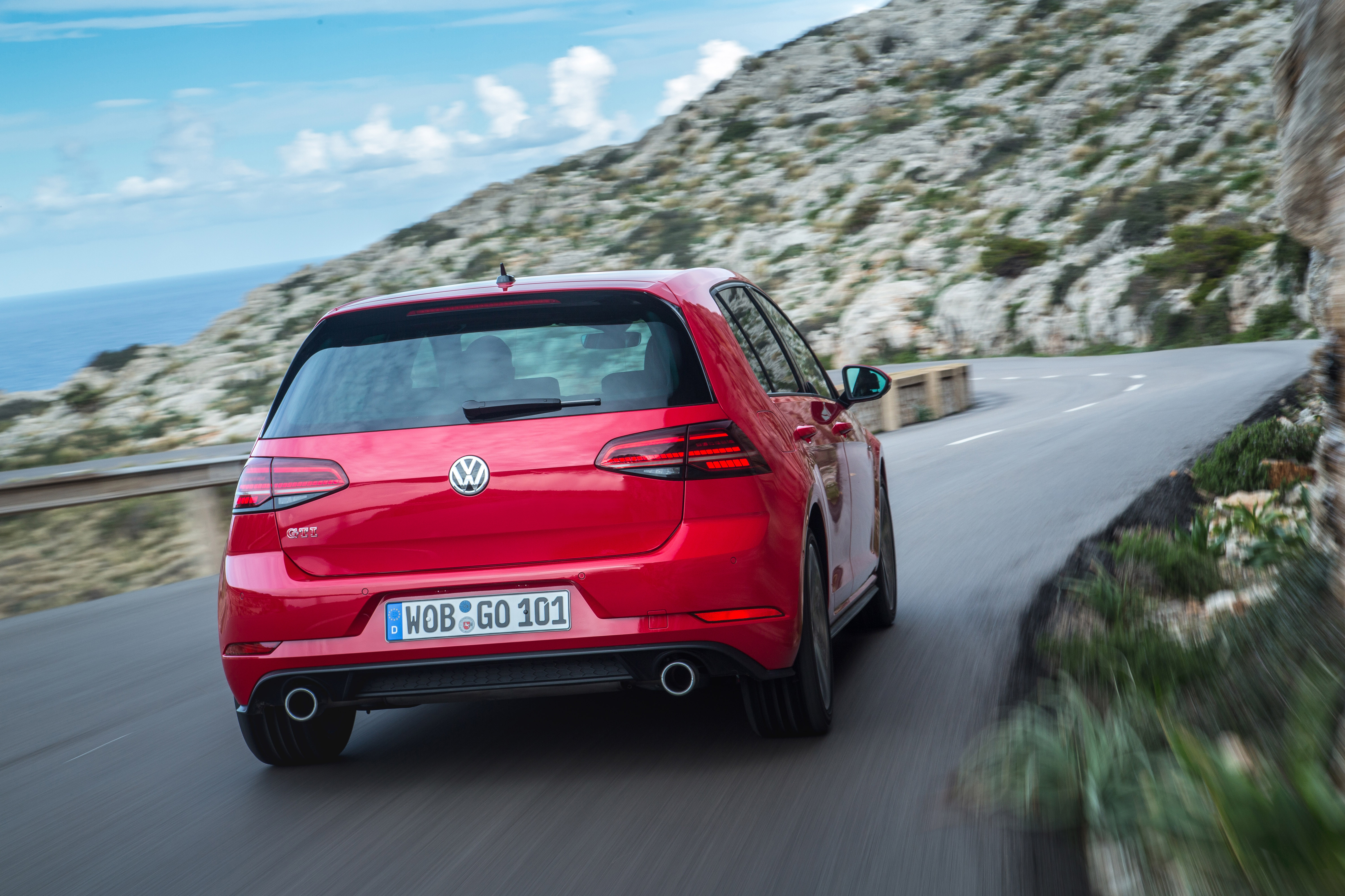 Na hát visszatérve a „minek ment oda”-alaptémához, miután jól megnyomkodtuk a kütyüket, megszereztük a piros GTI-t, majd GTI Performance-t, ez utóbbit a maga 245 lóerejével, mellyel igazából nem is értem, hogy hogyan gondolták a szervezők, hogy kiengednek minket az utcára. Egyrészről ettől a pillanattól kezdve elfelejtettünk a kütyükkel foglalkozni (inkább az utat néztük), másrészről pedig az első gázfröccsöt követően elöntötte az agyunkat az adrenalin és nem volt visszaút. Itt tenném fel az olvasónak a kérdést: Te mit csinálnál egy vadonatúj, piros, 230 lóerős Golf GTI-vel, ha egy napra megkapnád Mallorcán? Hát valószínű, hogy valami ilyesmit: