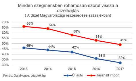 „Míg a korábbi években főként az idősebb, bizonytalan előéletű dízelautók jóval magasabb javítási költségeire vonatkozó fogyasztói tapasztalatok erodálták a fogyasztói bizalmat, másfél éve már a dízelbotrány és a nyugat-európai nagyvárosok közeljövőre tervezett behajtási tilalmai is jelentősen hozzájárultak ahhoz, hogy a magyar autósok is egyre nagyobb arányban kerülik az ilyen dízel járműveket