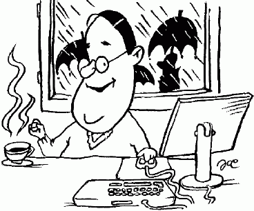 „És kávé van? Ma még nem ittam” – jutott eszébe Kovács Úrnak. Készített egy kávét – sok tejjel, habbal és 2 cukorral, ahogy szereti –, kényelmesen elhelyezkedett a foteljában és kinézett az ablakon. Kint szemerkélt az eső, fújt a szél, a szürke viharfelhők mögül nem látszott ki a Nap. Beburkolózott jó meleg pulóverébe, és arra gondolt, hogy most kéne indulnia a hivatalba a napokban lejárt személyi igazolványát meghosszabbíttatni – hiszen csak délig van ügyfélfogadás. Az eső rákezdett. Kovács Úr arra gondolt, hogy most semmi pénzért nem menne ki az utcára, legalább még fél óráig, amíg a Nap elő nem bújik. De az ügyintézés nem várhat!