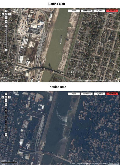 Most ismét bővítette a kínálatot az amerikai vállalat, és elérhetővé tette az USA déli partvidékéről származó, frissen készített műholdfelvételeket. Ezeken jól látható, hogy milyen pusztítást végzett a Katrina nevű hurrikán – a korábbi képekhez képest észrevehető, hogy a szélvihar szinte letarolta a várost. A képeken látszanak olyan negyedek, ahol a természeti katasztrófát megelőzően házsorok álltak, ám most nem látszik más ott, csak a föld.