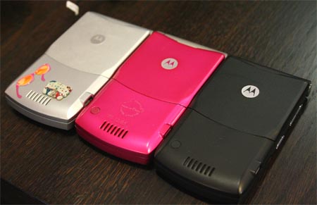 A T-Mobile Multimédia Napon lehetőségünk adódott arra, hogy egymás mellett lefotózzuk a Motorola V3 több színvariánsát.