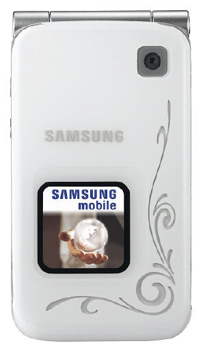 A szétnyitható kialakítással rendelkező Samsung SGH-E420 vélhetően leginkább a gyengébbik nem képviselőinek körében lesz népszerű, legalábbis erre enged következtetni a fehér készülékház, mely ráadásul egyedi motívumokkal van díszítve.