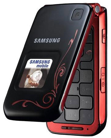 A szétnyitható kialakítással rendelkező és elsősorban hölgy vásárlóknak szánt Samsung SGH-E420 eddig csak fehér változatban volt kapható, most viszont megérkezett a fekete-vörös kiadás is, melynek felületén a korábbi modelléhez hasonló díszítő motívum fedezhető fel.
