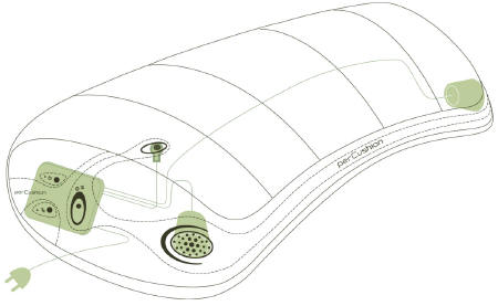A perCushion nevezetű high-tech párna belsejében többek közt egy mikrofont, két nagyméretű hangszórót és két visszajelző LED fényforrást helyeztek el a tervezők. A párna és a mobiltelefon közötti kommunikációról természetesen vezeték nélküli Bluetooth technológia gondoskodik.