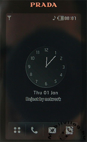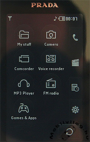 Billentyűzet tehát nincs, de cserébe a display gigantikus méretűre nőtt. A 3 colos képátlójú, TFT technológiájú panel egész pontosan 39 milliméter széles és 65 milliméter hosszú, vagyis hely van rajta bőven. Felbontás tekintetében 240×400 képpontról beszélhetünk, ami első hallásra kellemesnek tűnhet, azonban nem szabad elfelejteni, hogy ez a pixelmennyiség az átlagnál jelentősen nagyobb felületen terül el. Lényeg a lényeg, a Prada kijelzőnek relatív felbontása elmarad egy mai átlagos QVGA LCD relatív felbontása mögött, de azért még messze van attól, hogy túlzottan pixelesnek nevezzük. A négy fokozatban állítható fényerejű kijelző egyébként 18 bites színmélységű, vagyis 262 ezer színárnyalatot tud megjeleníteni.