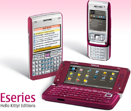 A mellékelt felvételen három vadonatúj, business kategóriás Nokia készülék látható, egész konkrétan a Nokia E61i, a Nokia E65 és a Nokia E90 kommunikátor. Minden bizonnyal Olvasóinknak is feltűnt, hogy ezek a speciális modellek igen csak feminin színvilágot kaptak, sőt még egy aranyos kiscica is felfedezhető rajtuk.