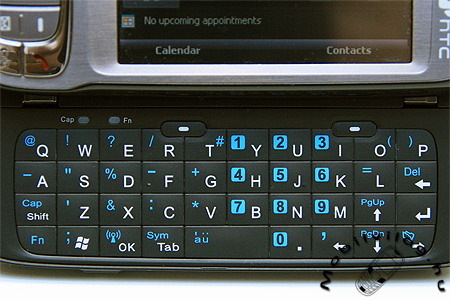 A teljes értékű QWERTY billentyűzet összesen 41 gombot vonultat fel, melyek térközök nélkül, szorosan egymás mellett sorakoznak és jól eltalált nyomásponttal bírnak. A felső szekcióba került a Cap és Fn jelzőfény, illetve a két funkciógomb. Komoly negatívum, hogy a billentyűzet nem rendelkezik ékezetes magyar karakterekkel, így azok előcsalogatása elég nehézkes, bár könnyen megtanulható.