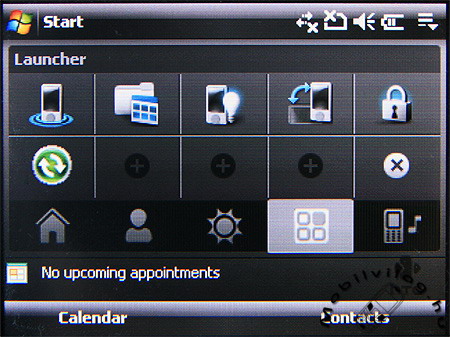 Ami a kijelzőt igazán egyedivé teszi, az nem más, mint a HTC által rávarázsolt tartalom, vagyis konkrétan a HTC Home nevezetű Today plug-in. Ez a hasznos és egyben pofás megoldás már az alapkijelzőn közli velünk az üzenetekkel, hívásokkal és profilokkal kapcsolatos információkat, illetve segítségével elforgathatjuk az LCD tartalmát és a fényerőt is szabályozhatjuk. Ami a legjobban tetszett, az az időjárással kapcsolatos funkció: az internet segítségével folyamatosan frissülő alkalmazás nem csak az aktuális időjárási helyzetet, hanem négynapos előrejelzést is közöl velünk, ráadásul teszi mindezt abszolút informatív és tetszetős formában.