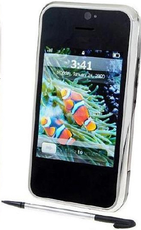 A fényérzékelővel és mozgásszenzorral is felvértezett, GSM modulos kínai iPhone másolat ára átszámítva mintegy 65 ezer forint.