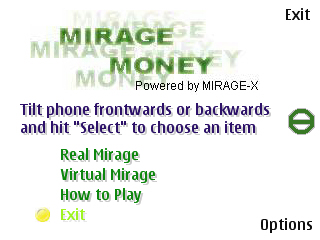 A 3D grafikás játékban két mód közül választhatunk. A Virtual Mirage egy virtuális helyszínen történő repkedést biztosít számunkra, ha pedig a Real Mirage-t választjuk, akkor a kijelzőn azt a képet látjuk, amit a telefonunk kamerája. Az egyelőre csak demó változatban elérhető, mintegy 850 KB méretű Mirage Money olyan S60-alapú, mozgásszenzoros Nokia okostelefonokon használható, mint például a Nokia N95, a Nokia N95 8GB, vagy a Nokia N82.