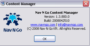 Az iGO 8-at tartalmazó, 2 GB-os kapacitású memóriakártyát egy laza mozdulattal kivettem a PDA-ból és behelyeztem a kártyaolvasóba. A Content Manager indítását követően feltűnt egy kis üzenet, hogy bizony megjelent az alkalmazás új verziója, így gyorsan frissítettem is: a korábbi 1.2.657.0 verziójú szoftver átadta a helyét az 1.3.800.0 verziónak.